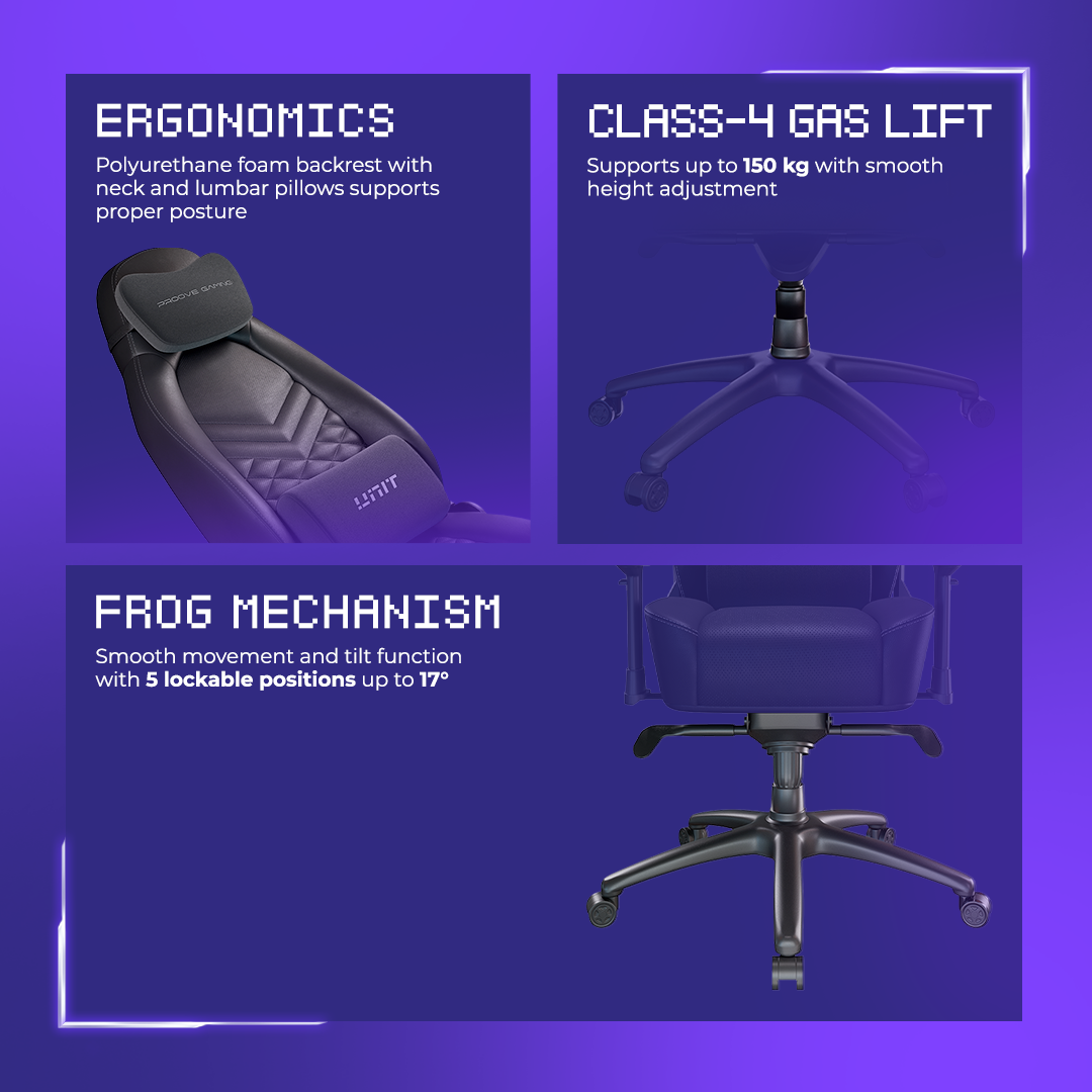Стриманий та стильний вигляд Proove Gaming Unit чудово впишеться у будь-який геймерський сетап. Завдяки ергономічній конструкції, крісло забезпечує максимальний комфорт навіть під час тривалих ігрових сесій.
