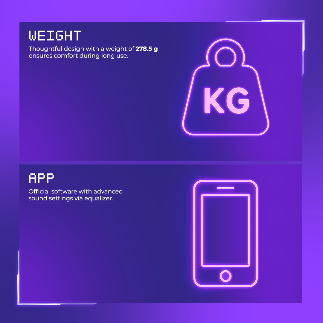 The Bliss Pro headphones are an exceptional symbiosis of quality sound and stable connectivity. Thanks to Bluetooth 5.4 version or 2.4GHz wireless connection and powerful drivers, the headphones deliver an excellent frequency response during playback. Great bass, high detail, and vivid music coloration will reveal the accessory's gaming qualities in a new way.